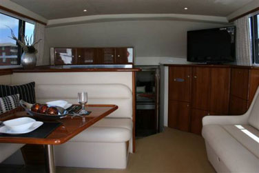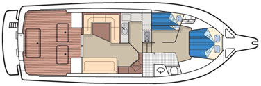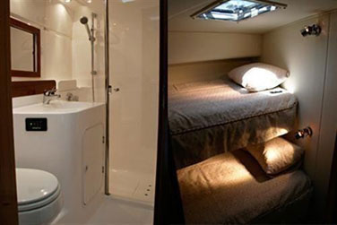 The Caribbean 40 is a luxurious vessel ideal for entertaining or the ultimate getaway. This spacious twin cabin vessel includes, a master double island bed and 2 guest bunks which comfortably accommodates 6-8 adults. Boasting an air conditioned fully appointed galley including microwave, cook top and fridge/freezer. Together with her impressive saloon consisting of a dinette and lounge together with a state of the art entertainment unit, Onan genset, cock pit fridge/freezer and twin 500 hp electronic diesel power plant is the vessel that most people would only dream about.